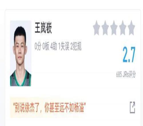 看到这样的王岚钦,球迷们也都忍不住了,输给广州男篮的比赛,只给他打出2.7分,全队垫底。而在球迷的评论中,一句话,戳心。